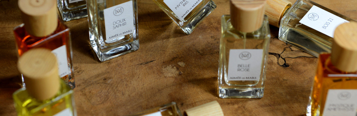 I created and patented the Aromaparfumerie® concept in 2014. This formulation is based on the combination of Aromatherapy and Fine Perfumery. Each Aimée de Mars perfume-skincare product is composed of an active core of 21 natural Essential Oils combined with Aimée Spring Water, which is natural and vibrant.