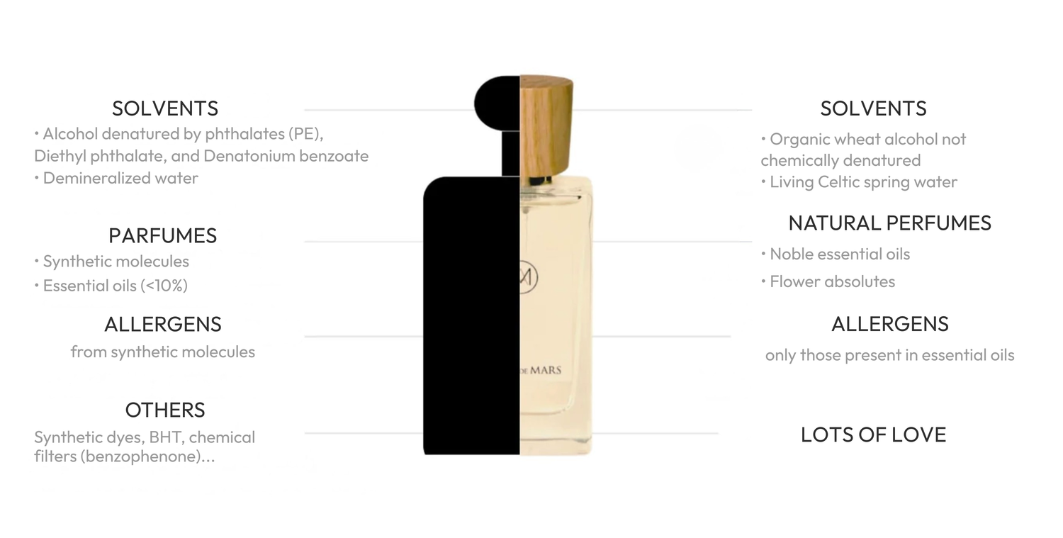 Comparison between a conventional perfume and a natural perfume Aimée de Mars
