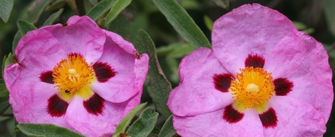 Le Ciste est un arbuste d’environ 2m de haut, donnant de jolies fleurs pouvant être roses, rouges ou blanches selon les variétés.