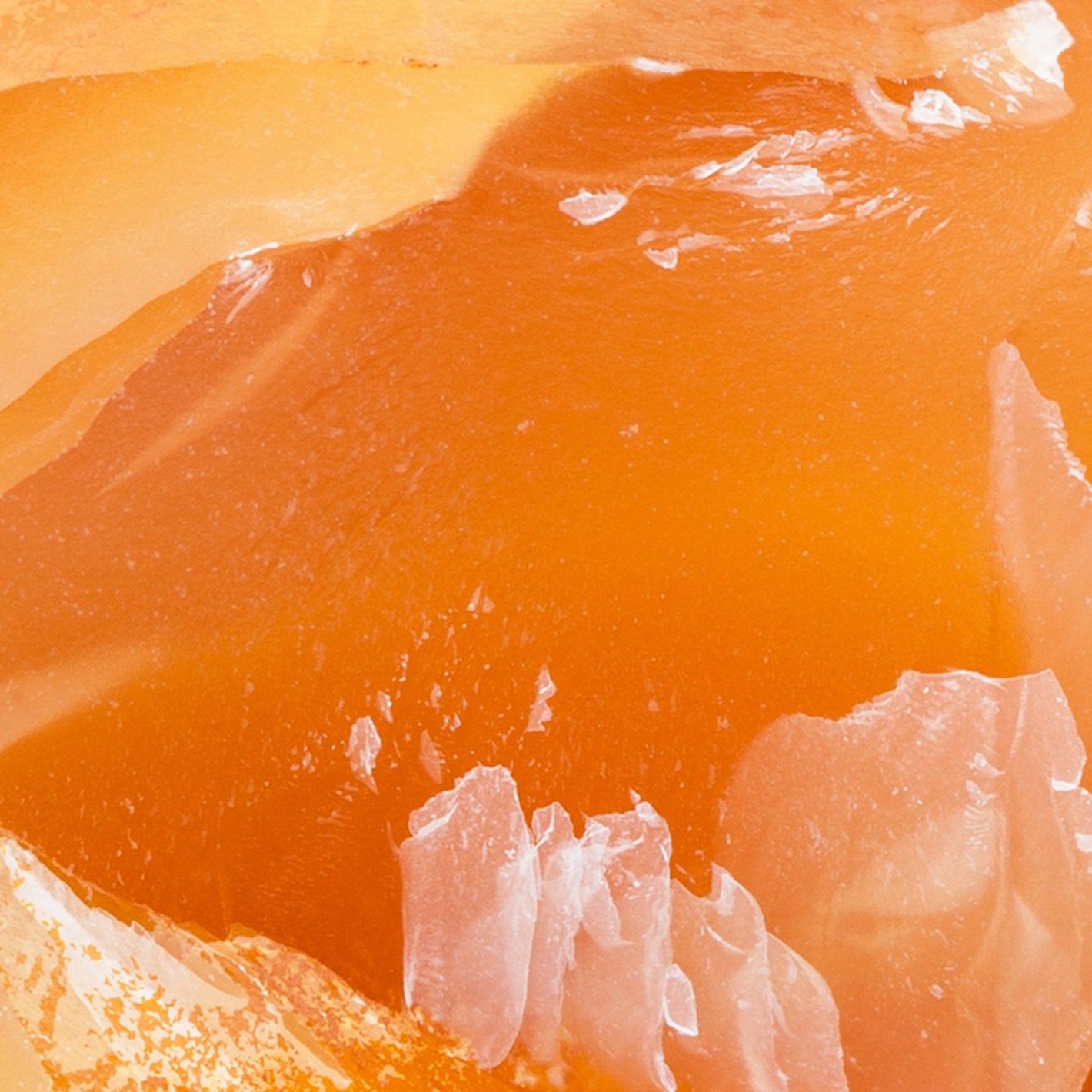 La cornaline est orangée, uniforme, se nuançant du rouge orangé au rouge clair.